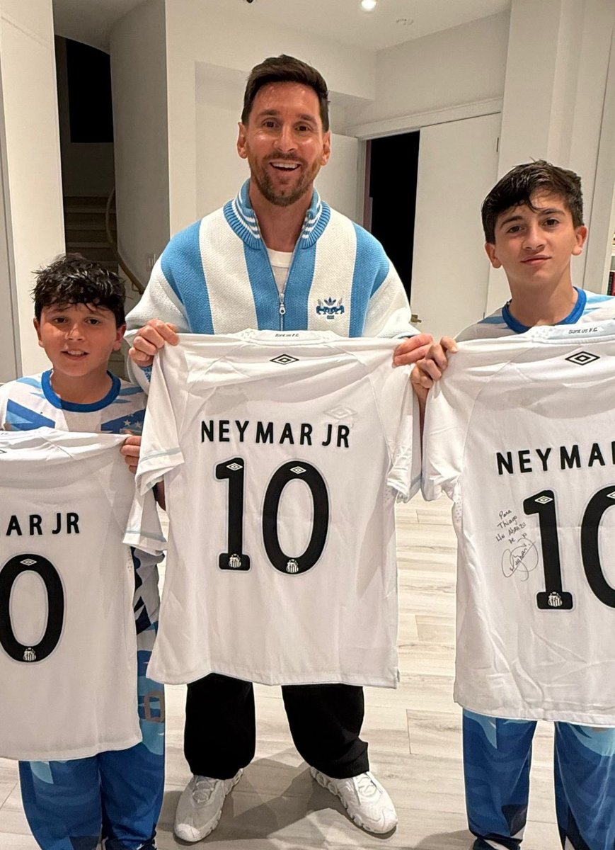 Neymar offre son maillot de Santos à Messi et ses enfants